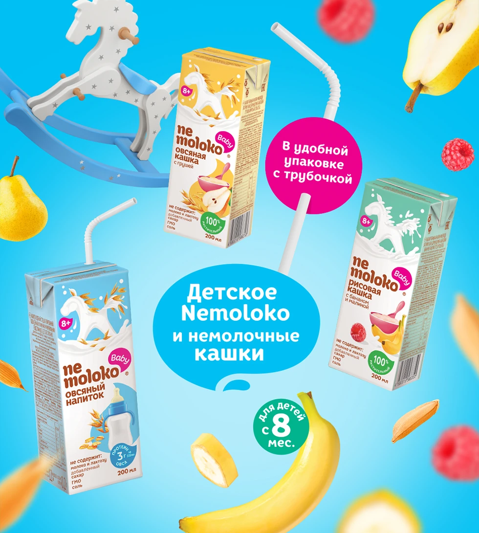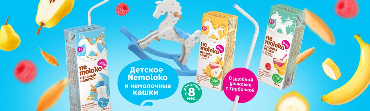 Все продукты кислонемолочной линейки Nemoloko Baby имеют свидетельства государственной регистрации (СГР) и рекомендованы для питания детей старше 12 месяцев.